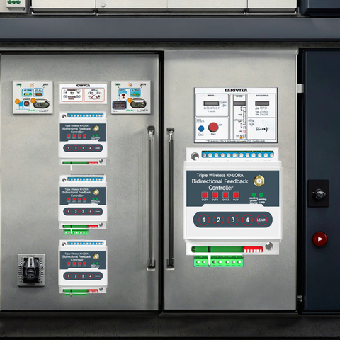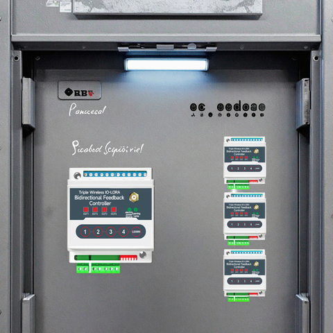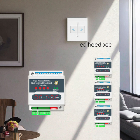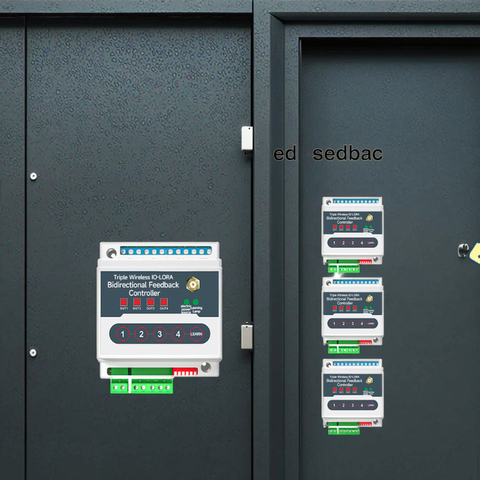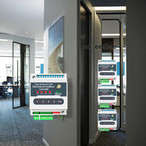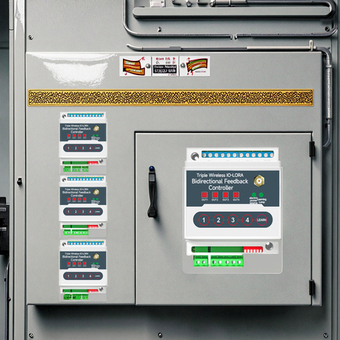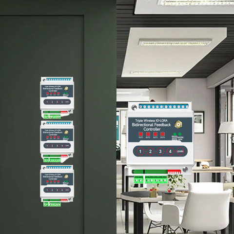 Interruptores de control remoto IO inalámbricos bidireccionales DC24V, un transmisor, tres interruptores de relé receptores, 10A, 24V, retroalimentación fija
